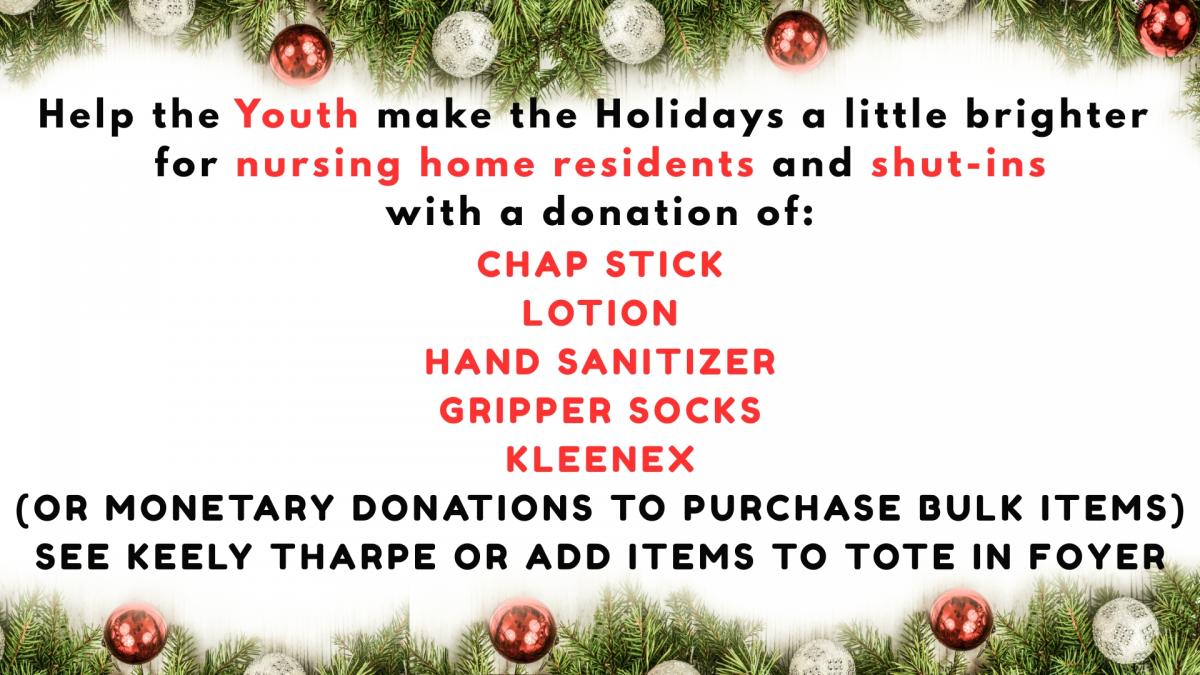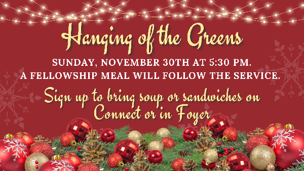 Please sign up to bring soup or sandwiches. Desserts will be provided by the Hanging of the Greens Committee!