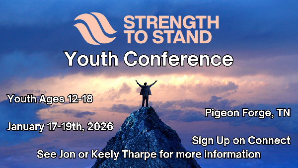 See Jon or Keely Tharpe for more information. This is for any youth age 12-18 (6th grade and up).
